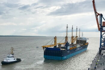 Dockschiff COMBI DOCK III transportiert Viermastbark von New York nach Brunsbüttel. Am Elbehafen schwimmt die PEKING zum ersten Mal wieder allein in heimischen Gewässern.